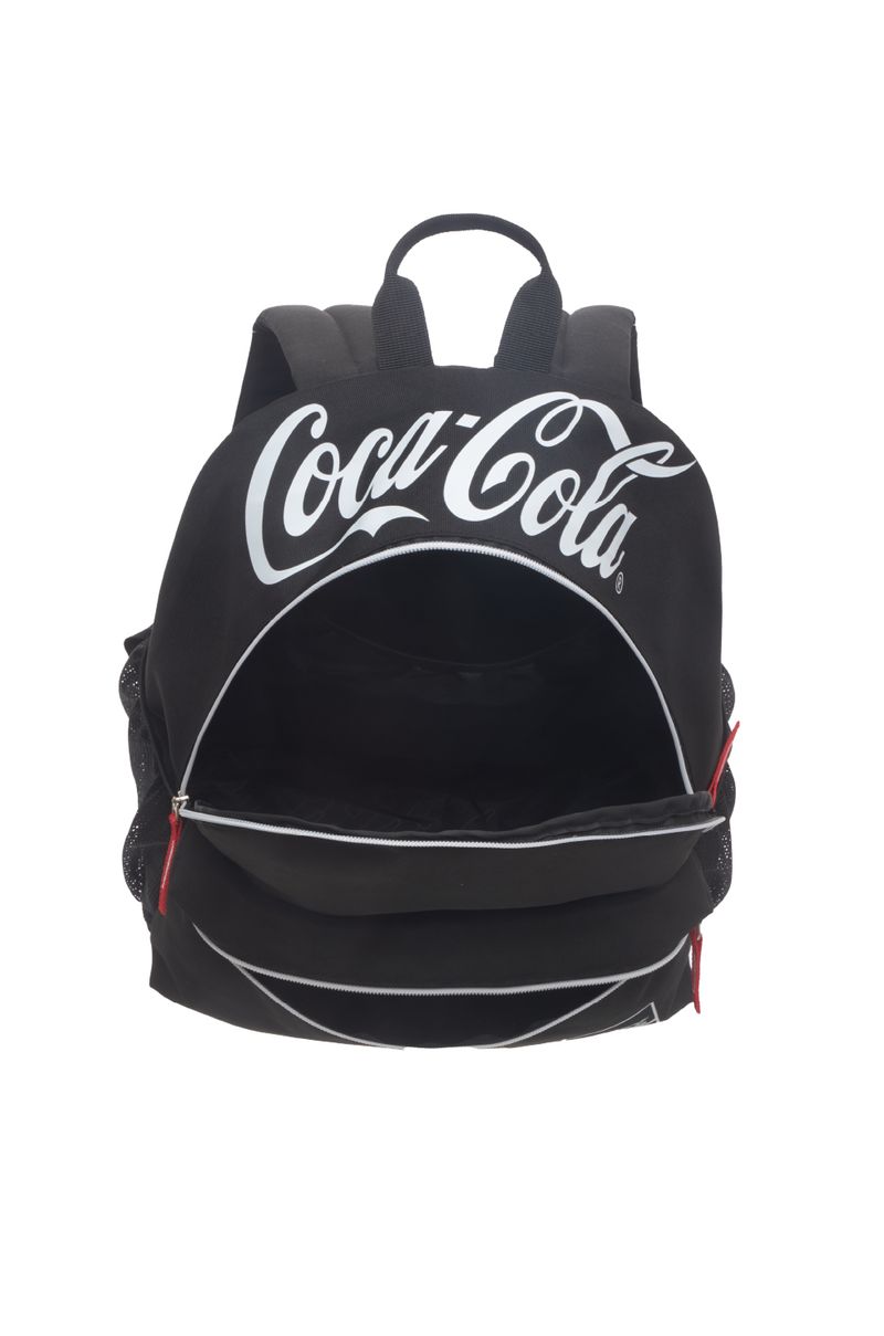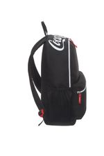 Mochila costas confeccionada em poliéster com logo estampado no painel superior e no bolso frontal, dois bolsos laterais em tela com elástico, puxadores de zíper personalizados em fita de gorgurão com detalhes em costura zig-zag, alças ajustáveis com etiqueta emborrachada com logo em alto relevo, forro estampado por termogravação, tela com espuma e costura personalizada no painel traseiro. Medidas: 34 x 43 x 13 cm