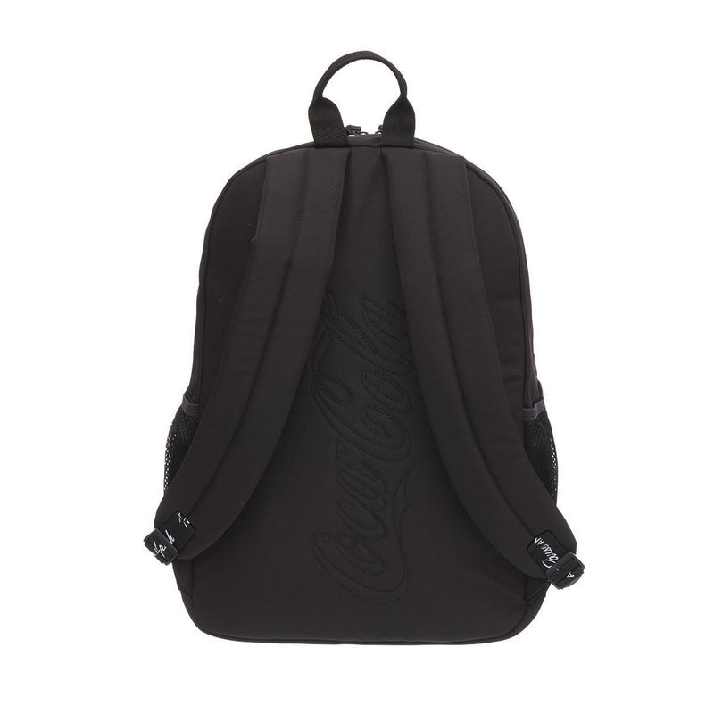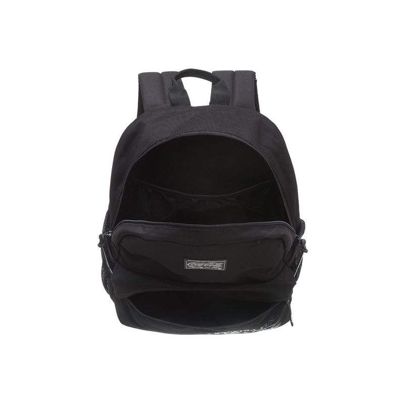 Mochila costas confeccionada em poliéster, painel frontal com patch emborrachado com logo, bolso frontal com logo impresso em silk e e aplicação em fita de gorgorão com impressão em silk, forro estampado personalizado, dois bolsos laterais em tela com elástico, puxadores de zíper emborrachados com logo, alças ajustáveis com fita de gorgorão com impressão em silk, costura personalizada no painel traseiro e etiqueta emborrachada costurada na lateral. Medidas: 37 x 15 x 40 cm